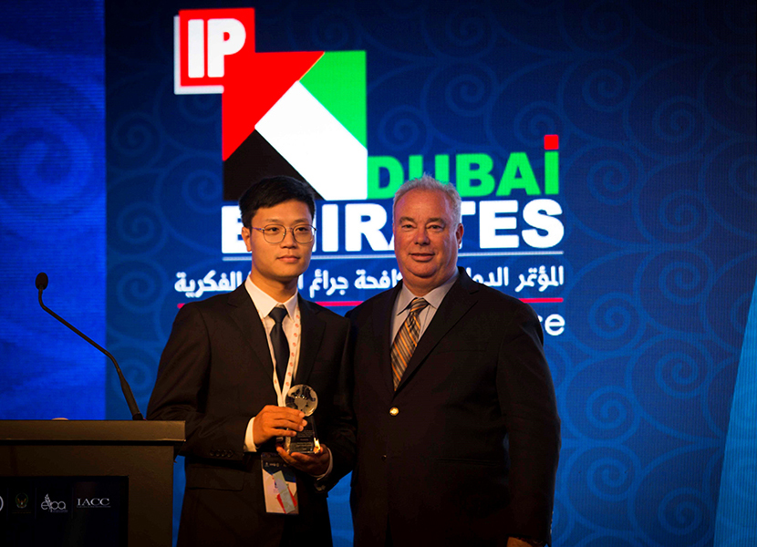 The first award celebrated the Young Inventor, Adeeb Sulaiman Mohammed E. Alblooshi, from the United Arab Emirates, whose invention of a prosthetic limb for his father was recognized at the 8th International Law Enforcement IP Crime Conference held in Hanoi, Vietnam.